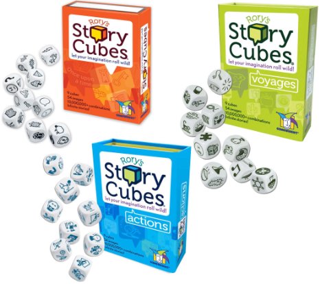 “Story Cubes” currently comes in three variations: the “classic” version, the “actions” version, and the “voyages ” version. You can play any variant on its own or randomly combine them.